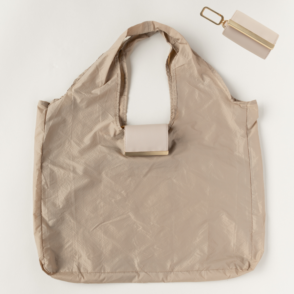 Aus einem minimalistischen Schlüsselanhänger entsteht im Handumdrehen eine vollwertige Tragetasche. Bereit für spontane Einkäufe, unerwartete Besorgungen oder den schnellen Umweg nach der Arbeit.